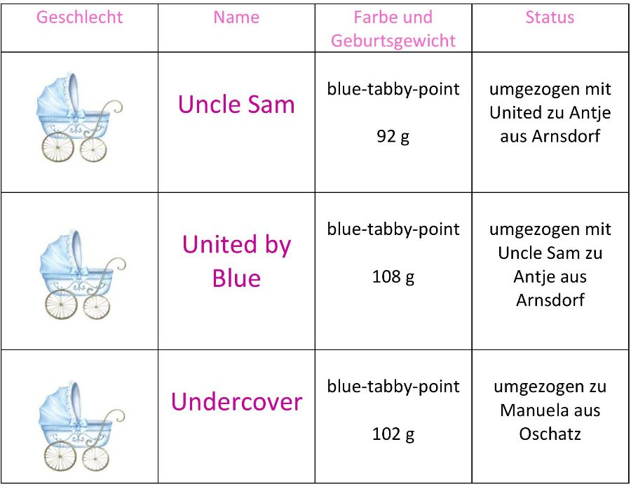 Und hier seht Ihr die drei Räuber Undercover, Uncle Sam und United by Blue mit 6 Wochen - sind es nicht tolle kleine Cabriofahrer?